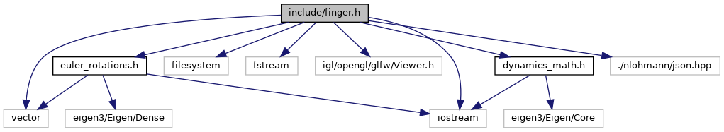 | This class generates a finger of n links. The number of links and their properties are defined by a json configuration file. It also calculates the forwared kinematics of the finger given the rotation of its joints and its origin. More... | |